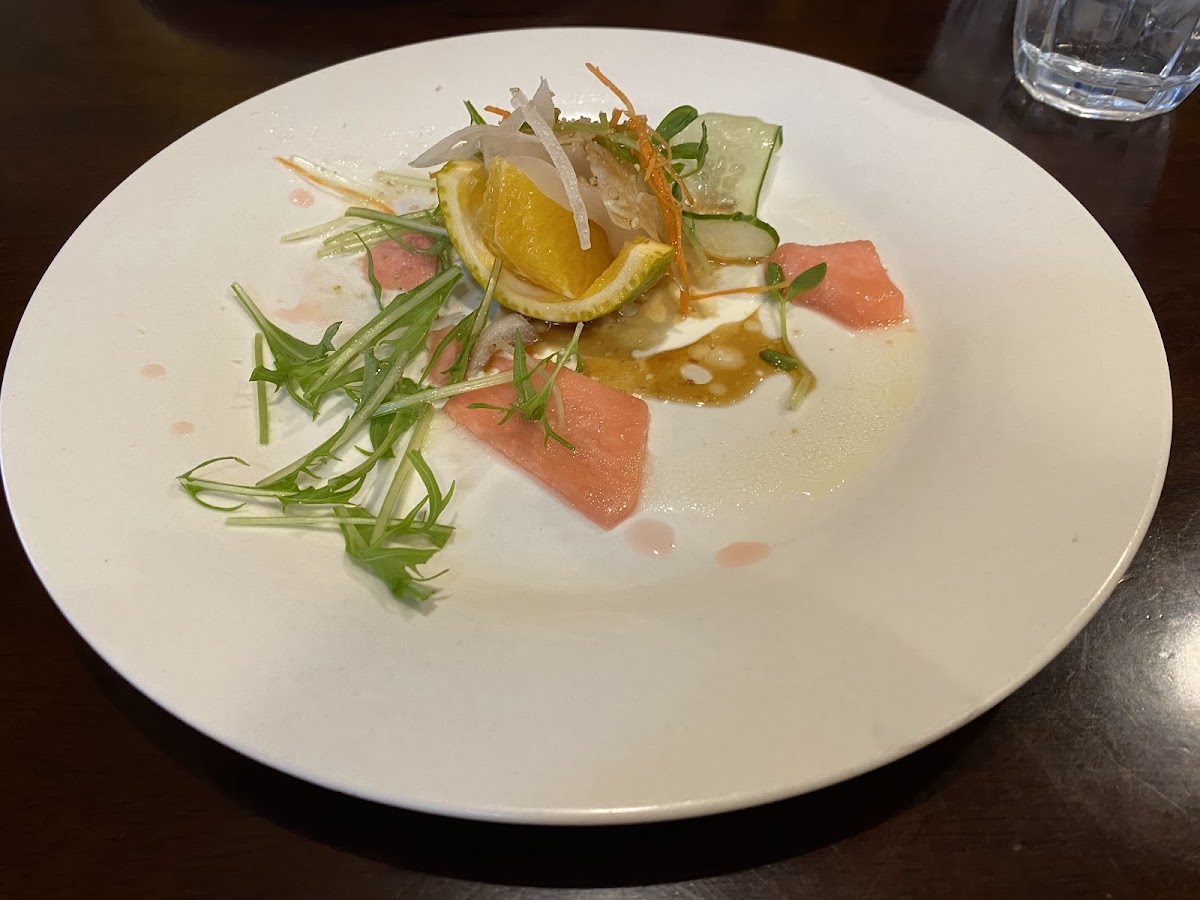 Akakosho is a charming restaurant located in the heart of Amakusa, Kumamoto, Japan, at 6-293-1 Jokamachi, Amakusa, Kumamoto 863-0016. Known for its cozy and stylish ambiance, it provides a delightful dining experience that blends both quality and affordability. Whether you're visiting for lunch or dinner, Akakosho offers a broad menu that caters to various tastes, featuring both seafood and meat dishes. The lunch course, in particular, has garnered praise for its excellent value, often including a variety of dishes like fish and meat as main courses, along with a satisfying dessert to round off the meal. The presentation of the dishes is also a highlight, as evidenced by the thoughtful and elegant plating that adds to the overall appeal of the restaurant.